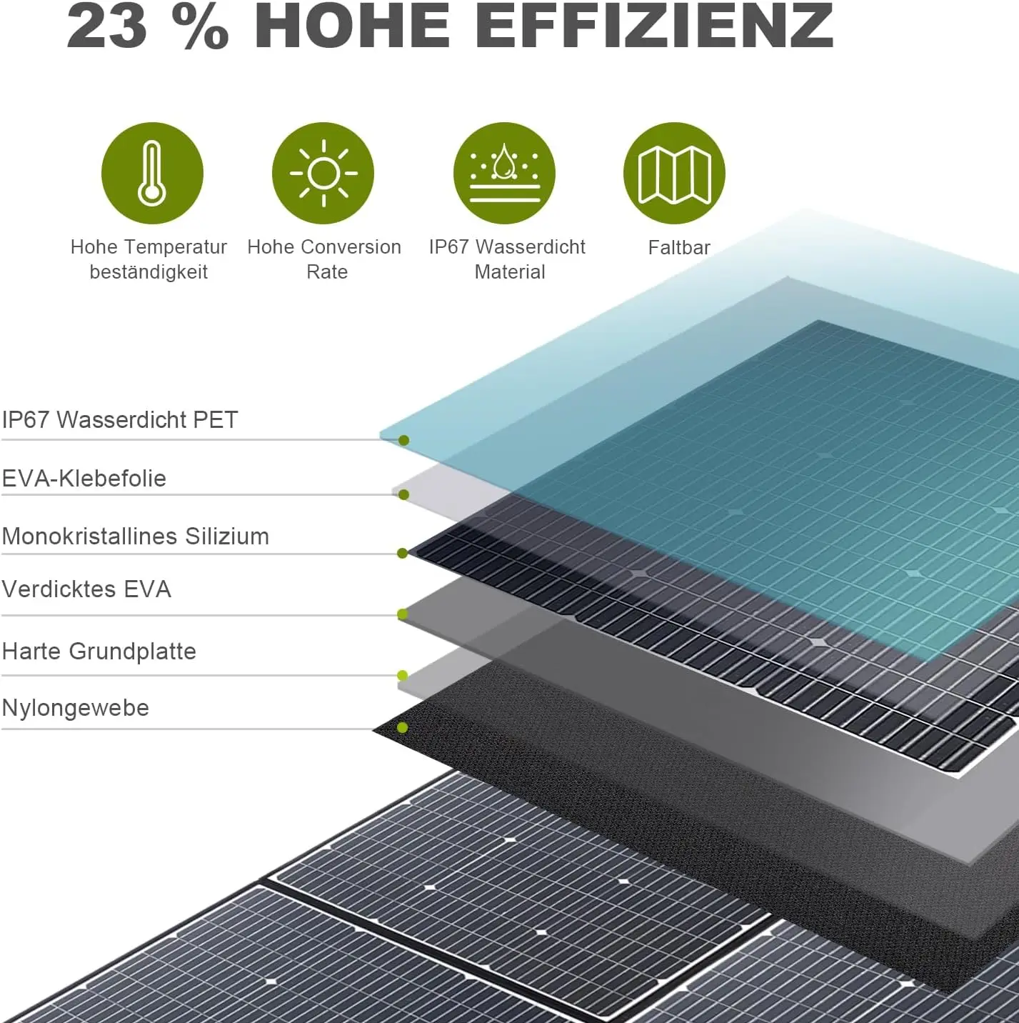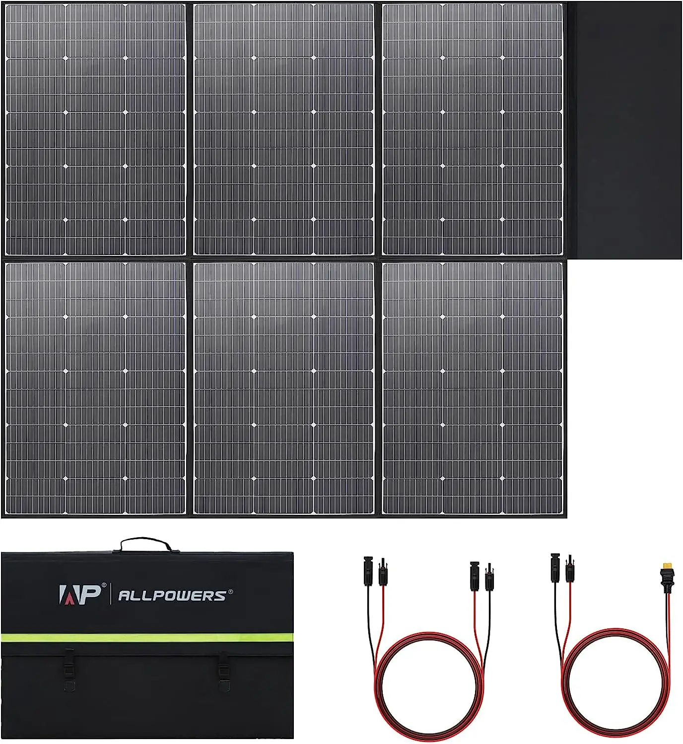 [Astonishing High Efficiency] Designed with monocrystalline cells, the ALLPOWERS 600W portable solar panel is able to generate more energy than standard solar panels, can convert up to 23% of sunlight into usable electricity, higher than similar products on the market (22.4%), giving you solar energy even on an overcast day.